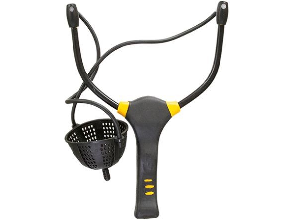 De Mega Ball Groundbait Katapult is een voerkatapult met een sterk ontwerp, die goed van pas komt bij het feeder en karper vissen, en dankzij het sterke ontwerp kan hij tot 50-60 meter reiken. Door het ronde mandje dat erbij geleverd wordt kan je op een eenvoudige manier pellets bij je stek voeren, daarnaast is het natuurlijk ook perfect te gebruiken met partikels, maar ook zaden en boilies kunnen met dit type geschoten worden voor kortere afstanden. Het vereist aandacht, de katapult op dezelfde hoogte houden en uittrekken, dus nauwkeurig voeren kan met een beetje oefening worden geleerd.