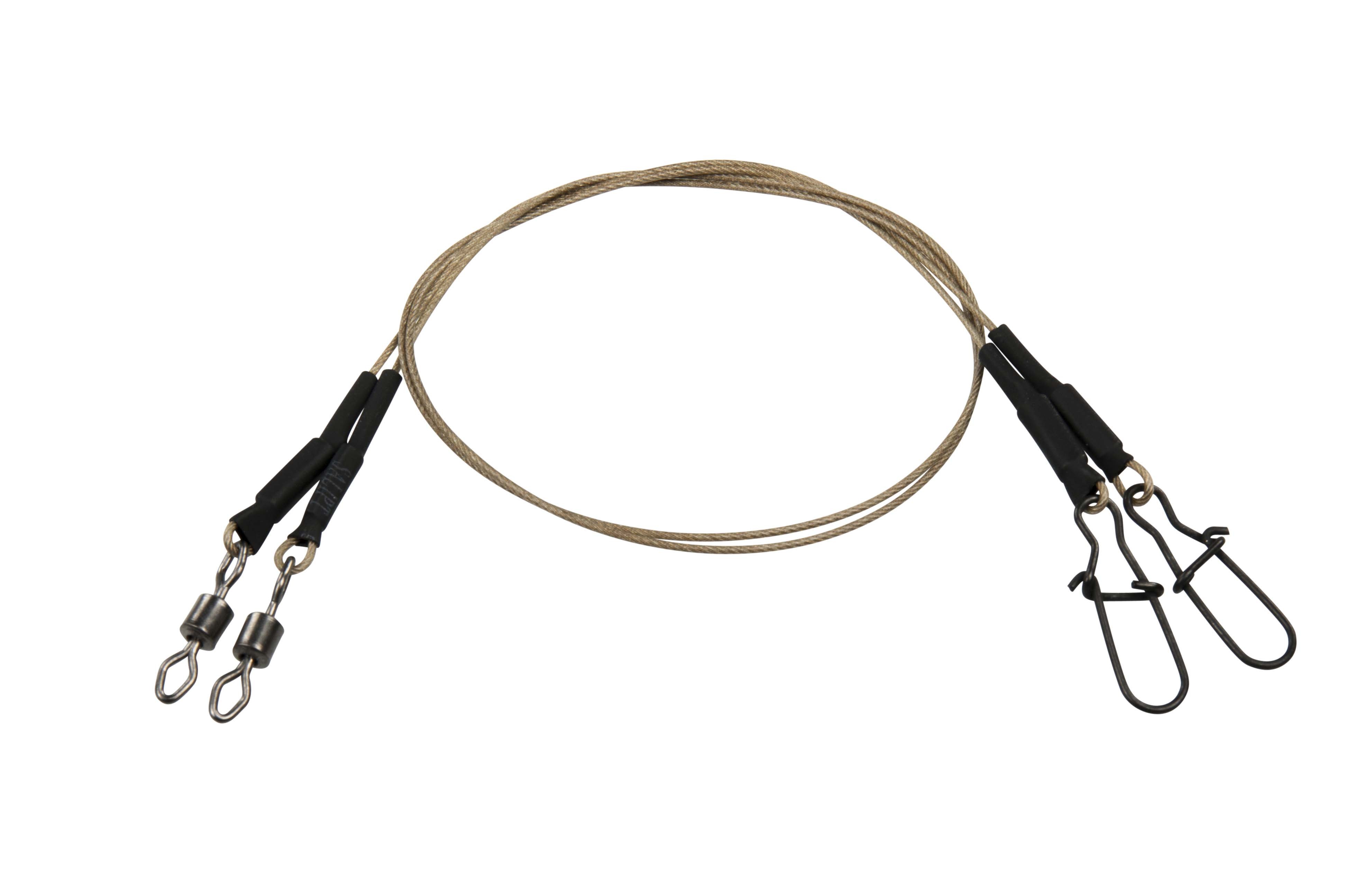 Sterke en flexibele roestvrijstalen onderlijn met een speciale bruine coating, die het twisten tot een minimum beperkt en een hoge schuurbestendigheid heeft. De onderlijn heeft een lengte van 30 centimeter, en is voorzien van een Effzett Diamond Rolling Swivel waarmee je je hoofdlijn verbindt. En aan de ander kant van de onderlijn zit een Effzett D – Lock Snap die zorgt ervoor dat je op een gemakkelijke manier van kunstaas kunt wisselen.