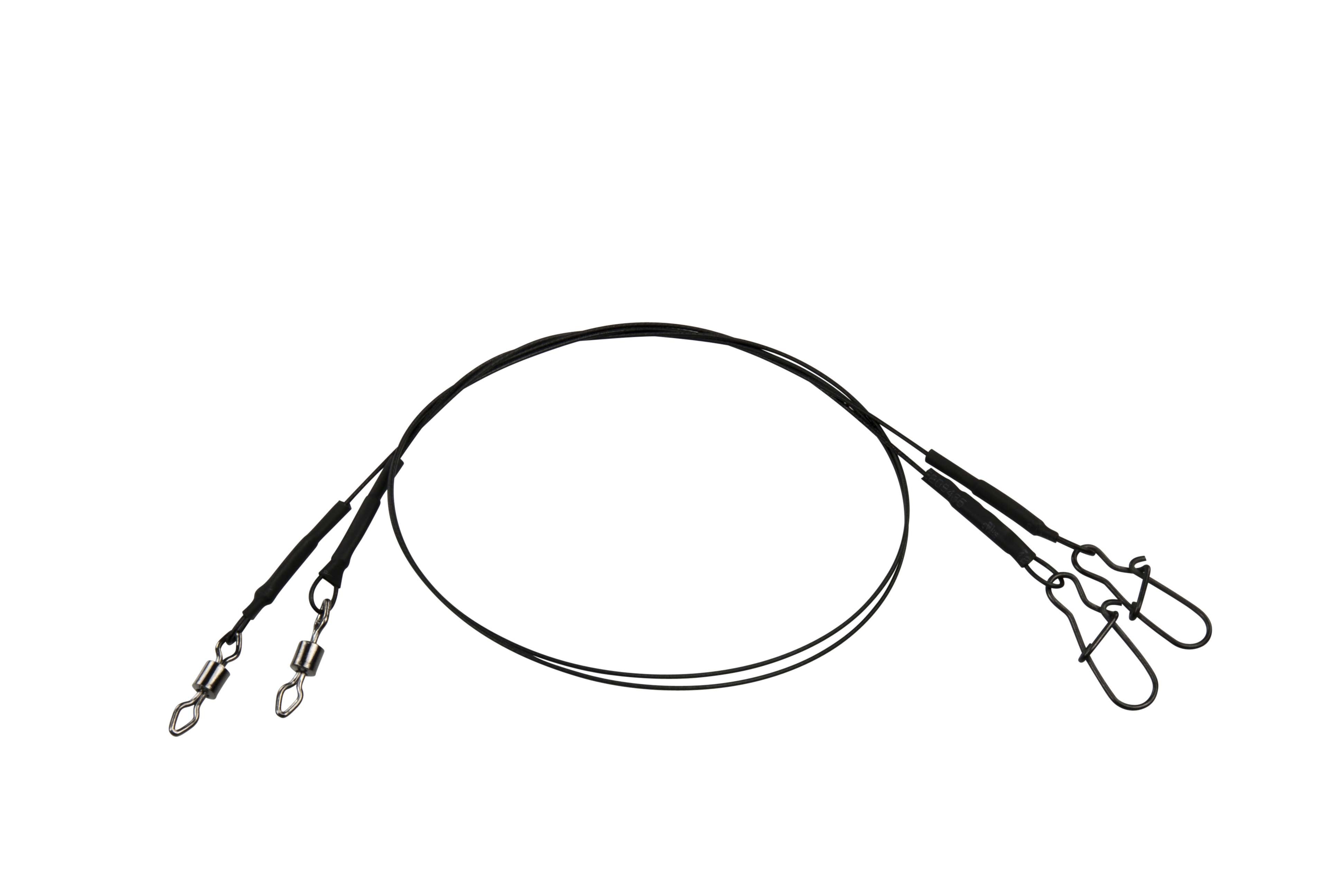 Sterke en flexibele 1x7-strengs zwart gecoat roestvrijstalen onderlijn, die het twisten tot een minimum beperkt en een hoge schuurbestendigheid heeft. De onderlijn heeft een lengte van 40 centimeter, en is voorzien van een Effzett Diamond Rolling Swivel waarmee je je hoofdlijn verbindt. En aan de ander kant van de onderlijn zit een Effzett D – Lock Snap die zorgt ervoor dat je op een gemakkelijke manier van kunstaas kunt wisselen.