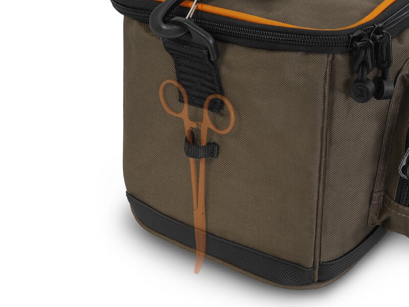Het ruime hoofdvak bevat een transparante plastic doos met verstelbare vakjes, zodat u altijd precies weet wat erin zit. Deze doos is perfect voor het opbergen van kunstaas, voerkorven, method feeders of andere kleine accessoires. Toegang tot het hoofdvak krijgt u via een stevige ritssluiting met handige trekkers. Aan de binnenkant van het deksel bevindt zich een mesh-vak met rits, ideaal voor het opbergen van kleine voorwerpen of documenten. Verder beschikt de tas over een extra ritsvak aan de voorkant voor extra opbergruimte. Net als bij alle producten van Delphin zijn ook bij de Easy L en XL de details van groot belang. Zo heeft de tas aan beide zijden handige lussen voor het opbergen van een tang of schaar. Voor eenvoudig transport is er een stoffen handvat op het deksel en een verstelbare, gevoerde schouderband.