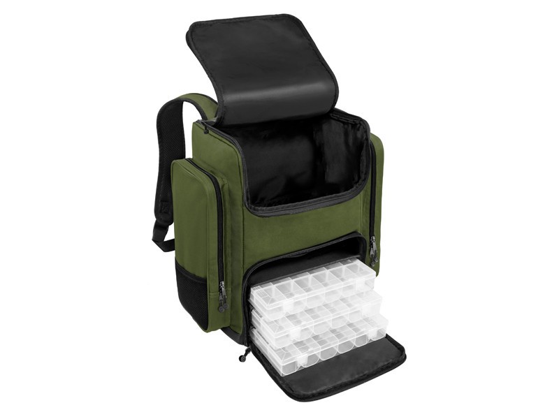 Dankzij de interne ruimte van deze rugzak met een volume van 35 liter kunt u een grote hoeveelheid visuitrusting of andere accessoires inpakken die u nodig heeft voor uw activiteiten. Liefhebbers van het spin- of feedervissen zullen zeker blij zijn met het feit dat de rugzak 3 transparante dozen bevat die geschikt zijn voor het opbergen van kunstaas/feederkooien en ander visgerei. Als u niet van plan bent deze dozen te gebruiken, kunt u ze er eenvoudig uit halen. Trek gewoon het klittenband los dat de compartimenten vasthoudt die ze scheiden, en u houdt een grote ruimte over om uw benodigde apparatuur op te bergen. Een ander onbetwistbaar voordeel is de universele riem met clips waarmee je bijna alles kunt bevestigen dat niet in de rugzak past en dat de riem wel aankan. De OneBag is uitgerust met kwaliteitsritsen en met praktische Delphin-houders op de trekker. De binnenruimte is toegankelijk via twee openingen aan de voorzijde. De bovenkant is voorzien van een praktisch vak waarin je kleine spullen zoals sleutels, mobiele telefoons enz. kunt opbergen. Aan de onderkant van de rugzak zit een laag PVC-materiaal, waardoor je hem ook zonder problemen op de vochtige of vuile grond kunt plaatsen. Bent u dus op zoek naar een universele rugzak die voor iedere vistechniek maar ook voor andere activiteiten inzetbaar is, dan voldoet OneBag perfect aan uw wensen.